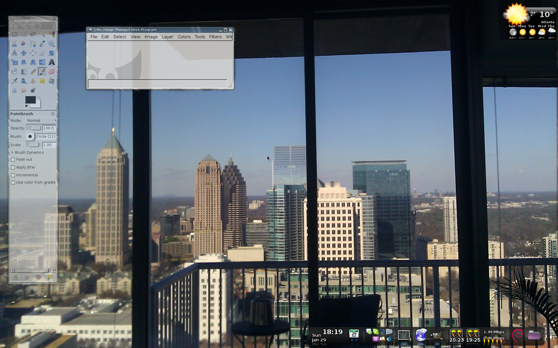 The GIMP has been around since before I started using Linux in 1998. It's touted as a commercial-grade, feature-rich, powerful image editor, and a marvel of Open Source. It deserves all these laurels and more. I have, however, never heard it praised as “intuitive”, “easy to use”, or “a good jammy for beginners”, nor had I ever referred to it as anything but “the fucking GIMP” or sometimes, reverently, “GIMP, the tool of dashed hopes and idle dreams” (and once in a Jeopardy fantasy as “What is the GIMP?”. The answer, of course, had been “The tool which fucks you hardest aside from Blender.” It is rumored that people not paid to work on Blender have used it to do something other than waste massive amounts of time and frustrate themselves; after much research, I have concluded that this is false). To the left, you'll see what greets one upon launching GIMP. Not so bad, huh? We've got a trapezoid, a trapezoid with one retarded side (I believe the technical term to be “right trapezoid”), something that looks like a notary stamp, and I believe we're being given the finger in that last row of icons, but there's tooltips and this doesn't look like anything a few beers can't help us work through. Let's get our image manipulation on!