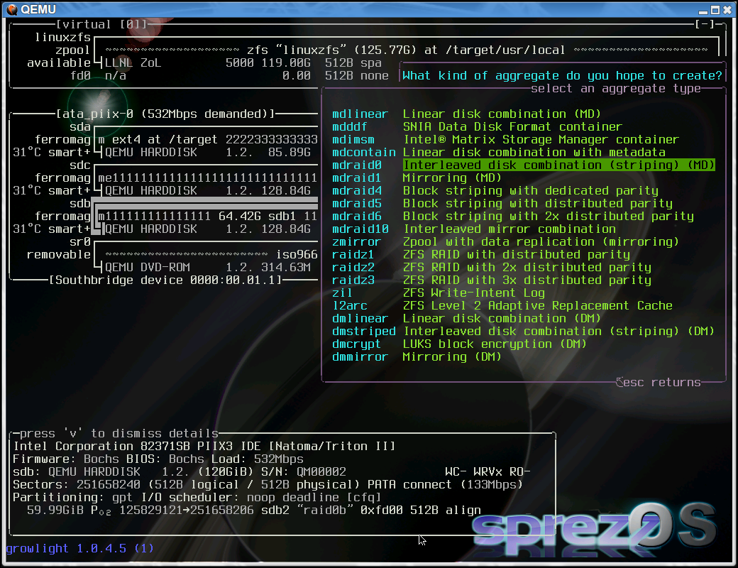 Early this week I released the 1.0.4 installer, which as promised added ZFS support back into the install process. I posted a G+ album featuring the 1.0.4 installer; here're some money shots (click for original size):
